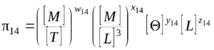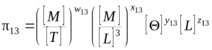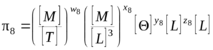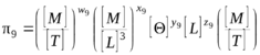 Так как уравнения должны быть безразмерными, а показатели степени при [M], [L], [T] равны нулю, то для каждого
