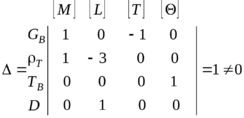 Общее число величин, существенных для рассматриваемого процесса, равно 18. Ранг матрицы определителя
