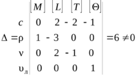 Составим матрицу размерностей существующих величин в виде таблицы.