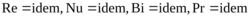 Их главным характерным свойством является нулевая размерность. Обычно критерии подобия принято называть именами ученых, внесших большой вклад в соответствующие области науки, и обозначать двумя начальными буквами их фамилий, в некоторых случаях они обозначаются просто буквами: Re – число Рейнольдса (Reynolds), Nu – критерий Нуссельта (Nusselt) и т. д. Обычно индексы не указываются, а идемальность (одинаковость) критериев подобия у подобных явлений записывают так: