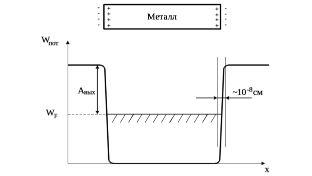 , наоборот, меньше, так как заряд электрона отрицателен. Таким образом, металл для электронов подобен потенциальной яме.