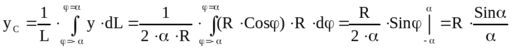 ентр тяжести однородной дуги окружности (см. рис.14.5) расположен на её оси симметрии и отстоит от центра этой окружности на расстоянии