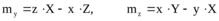 Составляем уравнения моментов относительно осей y и z. При вычислениях моментов отдельных сил воспользуемся способом перестановки индексов, в соответствии с которым: