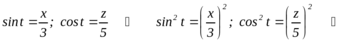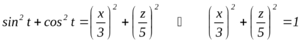ешение.- Возводя в квадраты и почленно складывая первые два уравнения, получаем: т.е. траектория точки расположена в плоскости