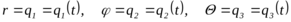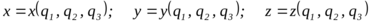 Определяющие положение точки в пространстве (и изменяющиеся, поэтому, во времени) 3 независимые переменные в общем случае обозначаем