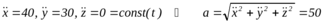 (скорости в м/с; ускорения в м/с2).