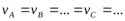 налогично: после взятия производной по времени от последнего равенства, получаем и равенство ускорений точек