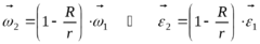 Учитывая закон о единой угловой скорости, делаем вывод: угловая скорость тела 2 относительно полюса