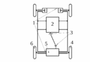 а рис.21.4: 1 – рама автомобиля; 2 – двига-тель с коробкой передач, приводящий во вращение карданный вал 3 (который имеет 2 шарнира Гука); 5 – конический дифференциал, приводящий во вращение правое (4) и левое (6) ведущие колёса.