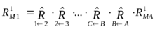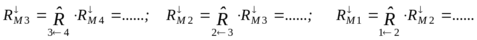 Принимаем к рассмотрению пример по рис.22.1 и записываем матрицы преобразования для всех спарок систем отсчёта. При этом, используем сокращённые обозначения: