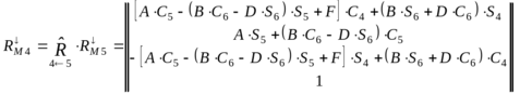 Последняя операция перемножения матрицы преобразования координат на адаптированный вектор-столбец приводит к результату: