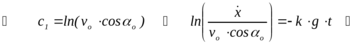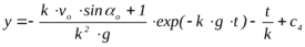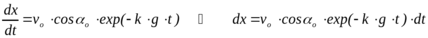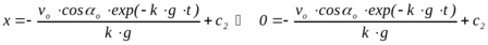 ПРИМЕР 25.8*.- Полёт тела (снаряда), брошенного под углом к горизонту с учётом сопротивления воздуха - это пример на определение движения центра масс в случае, когда главный вектор внешних сил является функцией вектора скорости