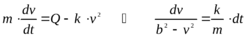 ПРИМЕР 25.6.- Вывод формулы для вычисления максимально возможной скорости катера. Это пример на определение движения центра масс в случае, когда главный вектор внешних сил является функцией квадрата модуля скорости