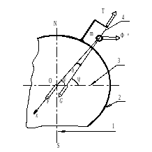 - модуль нормальной составляющей переносного ускорения центра шарика (материальной точки массой