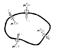 7.6. Условие равновесия оболочки с ответвлениями и установившимся в ней движением текучей средыН а рис.27.3 изображена механическая система, оконтуривающую оболочку которой в нескольких местах пронизывают потоки текучей среды (обычно жидкость). По одним частицы втекают внутрь оболочки, по другим вытекают. Потоки характеризуют
