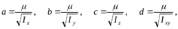 центробежные моменты инерции, включающие в свои обозначения главную ось, равны нулю -пусть, например, главной осью является