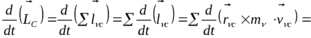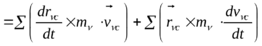В получившемся выражении первая сумма равна нулю - векторно перемножаются сонаправленные векторы. Во второй сумме добавляются, в отличие от преобразовательного процесса рассмотренного в подразделе 7.4, переносная и кориолисова силы инерции (т.к. центромассовая система не является инерциальной) -