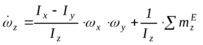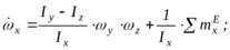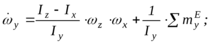 а этом аналогия с вращательно движущимся телом заканчивается, ибо следует учитывать переменность вектораугловой скорости и равенства нулю центробежных моментов инерции относительно осей