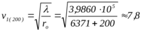 Вычисляем круговую скорость КА, находящегося на расстоянии 200 км от поверхности Земли (где можно пренебречь сопротивлением атмосферы):