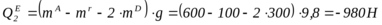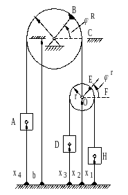 РИМЕР 34.1.- Двухтросовая система, с тремя грузами, неподвижным и подвижным шкивами