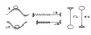 На рис.35.1: 1 и 2 – мяч на бугорке, и в ямке; 3 и 4 – шарнирное соединение стержня с растянутой, и сжатой пружиной; 5 и 6 – стержень с шариком на конце шарнирно соединённый с потолком, и полом.