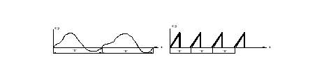 На рис.36.9 представлено 2 таких примера: слева – периодическая непрерывная (например в двигателях внутреннего сгорания); справа – периодическая, кусочная, с разрывами 1-го рода.
