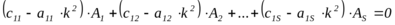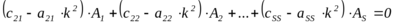 ) алгебраических уравнений может иметь решение отличное от нуля лишь в том случае, если её определитель равен нулю. Поэтому получаем