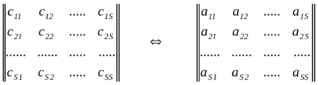 - как суммы определителей 10-ти комбинированных матриц. Вот, в частности, по каким матрицам вычисляется коэффициент