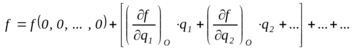 Колебания происходят около положений устойчивого равновесия систем и, поэтому, начала отсчёта для обобщённых координат принимают такими, чтобы в положении равновесия они равнялись нулю. Тогда каждый из переменных коэффициентов раскладывают в ряд Маклорена и ограничиваются постоянной составляющей, т.е. от