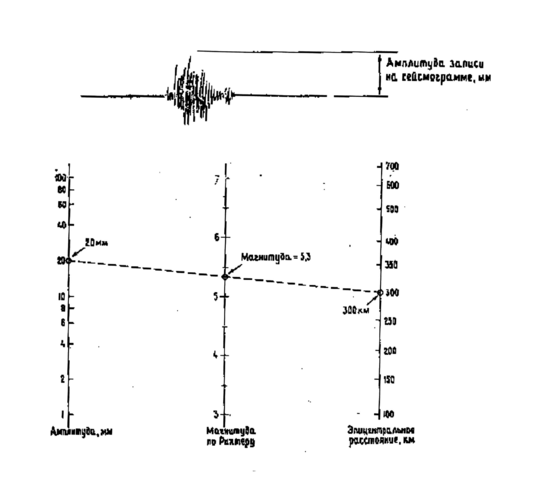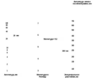 Рис. 37. Номограмма для определения магнитуды Рихтера