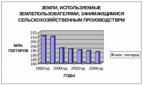 По данным Госкомстата Российской Федерации проведем анализ использования ЗЕМЛИ, как элемента экономического актива, включенного в состав национального богатства, землепользователями, занимающимися