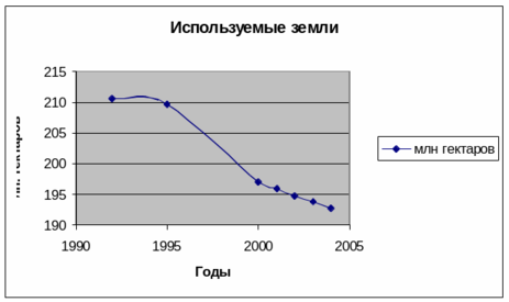 По полученным результатам видно, что абсолютные значения 1% прироста использования земель в 1992-2004гг.- снижалось.