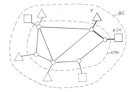 Любую, даже самую сложную структуру ВС можно рассматривать как множество трактов телеобработки данных, обеспечивающих взаимодействие терминальных узлов Т с соответствующими хостмашинами (Н) или серверами (S), которые предоставляют информационно-вычислительные ресурсы.