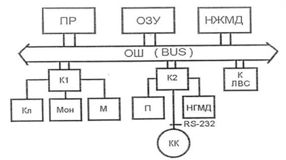 К1, К2 - многопортовые контроллеры внешних устройств