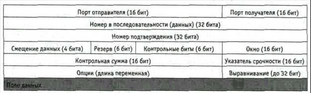 Из рис.12.3 видно, что протокол TCP использует следующие поля: