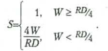 Для простоты рассуждений проигнорируем влияние служебных битов в сегменте TCP. Предположим, что отправитель начинает передавать последовательность байтов получателю через установленное соединение. Для того чтобы первый байт достиг получателя, потребуется время, равное D. Такое же время — D секунд — потребуется для получения подтверждения. В течение этого времени отправитель может передать 2RD бит, или RD/4 байт. На самом деле, отправитель ограничен размером окна в W байт и не может сдвигать окно, пока не получит подтверждение. Только при W> RD/4 на этом соединении достигается максимально возможная пропускная способность. Если W<RD/4, то близость пропускной способности к максимальной определяется отношением W к RD/4. Следовательно, нормированная пропускная способность S может быть выражена как:
