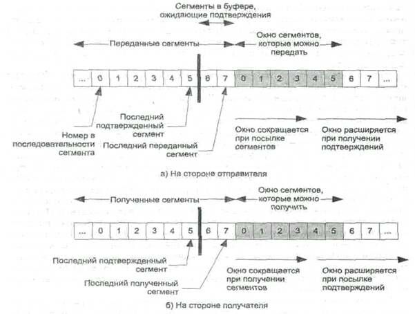 Рис.12.7 Сегменты в потоке данных на передающем и принимающем устройствах