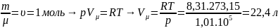 Рассчитаем объем занимаемый газом при натураном условии Т = 273,15К, р = 1,01.105 Па
