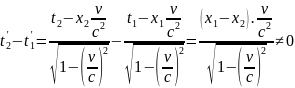 Таким образом, два события, одновременные в одной ИСО, могут быть не одновременными в другой ИСО.