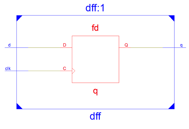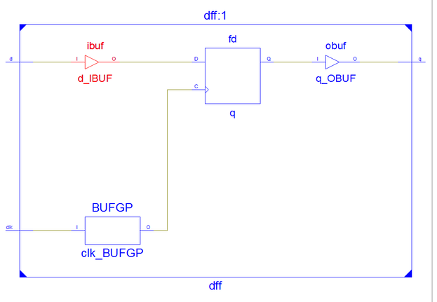 На схеме видны входные и выходные буферные элементы. Сам триггер реализован на D-триггере , входящем в состав ЛУТ