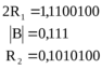 Далее, на следующем шаге алгоритма, сдвигаем второй остаток R2 на один разряд влево (обозначаем 2R2) и складываем с числом –В, представленным в дополнительном коде