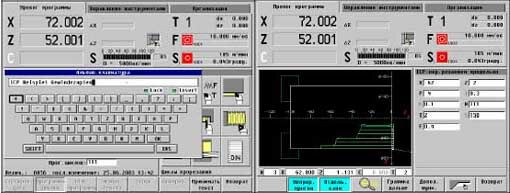 - клавиатура ввода на пульте УЧПУ (рисунок а), дисплея УЧПУ графического, который может работать как в режиме алфавитно-цифровом, так и в графическом режиме. Также необходим пульт управления станком. На экране дисплея высвечивается последовательность вопросов, на которые должен ответить оператор нажатием определенных буквенных или цифровых клавиш. Из меню оператор выбирает желаемый вариант. Диалоговое программирование включает следующие этапы: