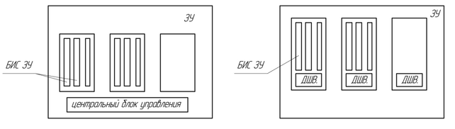 Во втором варианте в каждом модули памяти помимо БИС ЗУ имеется дешифратор, обеспечивающий выборку нужной БИС путем дешифрации кодов адресов.