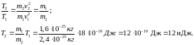 Дано: m1 = 1,6·10–25 кг;m2 = 2,4·10–25 кг;T1 = 18 нДж = 18·10–9 Дж