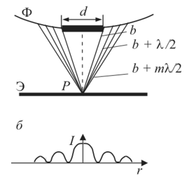 Дифракция Фраунгофера — наблюдается если источник света и точка наблюдения бескон удалены от препятствия вызывается дифракцию.
