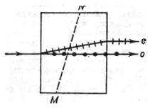 Некоторые прозрачные кристаллы обладают свойством двойного лучепреломления: при попадании света на кристалл луч раздваивается. Для одного из лучей выполняются обычные законы преломления, и поэтому этот луч называют обыкновенным, для другого — эти законы не выполняются и луч называют необыкновенным.