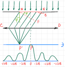 Уширение щели приводит к сужению дифракция полос и увеличению яркости max