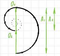 Разобьем зоны Френеля на бесконечно тонкие слои и построим результирующую амплитуду. Полученная линия называется спиралью Френеля.