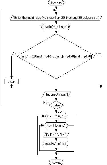 Write('Enter the matrix size (no more than 20 lines and 30 coloumns): ');