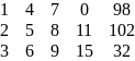 | 3х3 | | Программа прекращает работу из-за того, что не выполняются никакие действия над матрицей (см. Задание) |